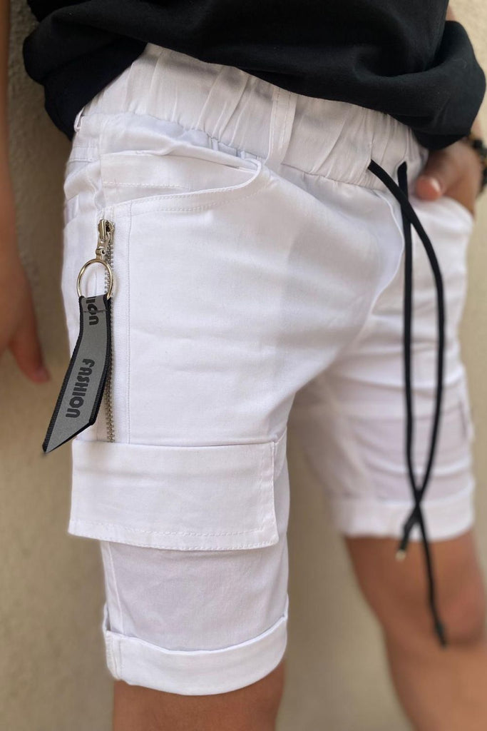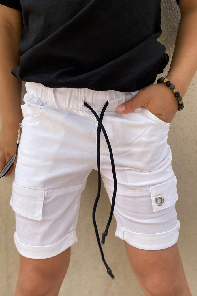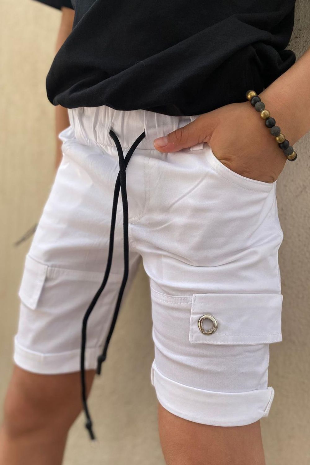 מכנס ברמודה לבנים בשילוב גומי ושרוך עם כיסים בצידי המכנס