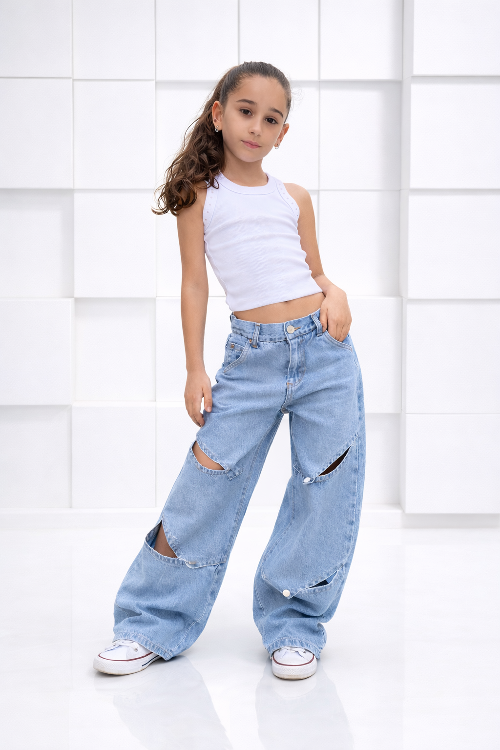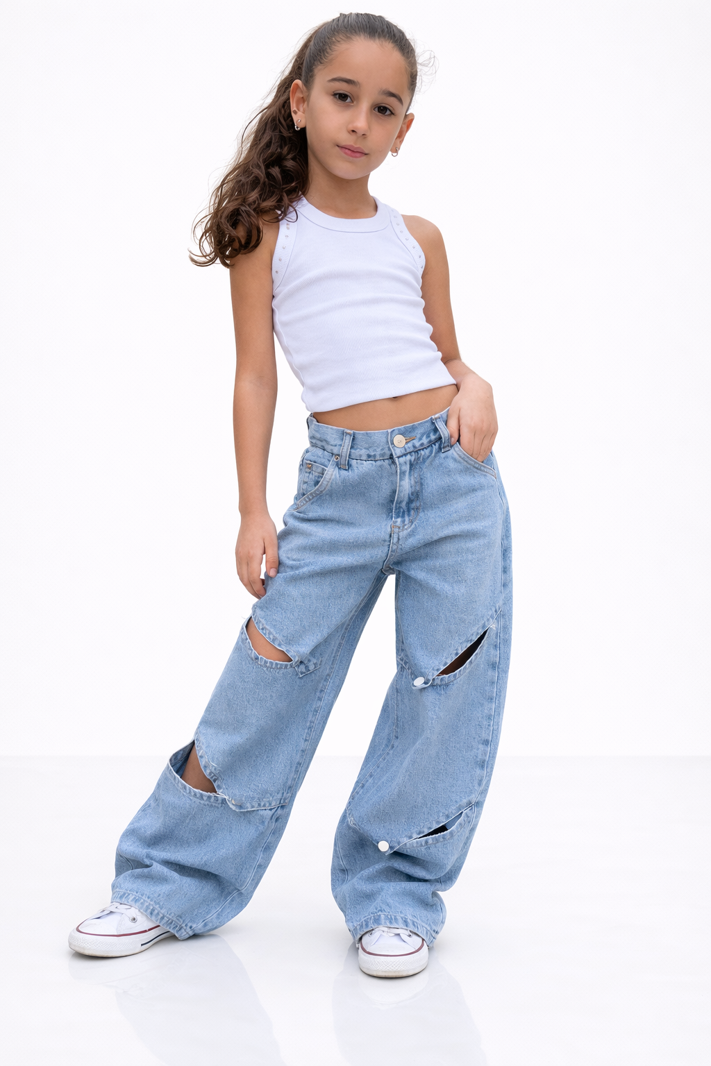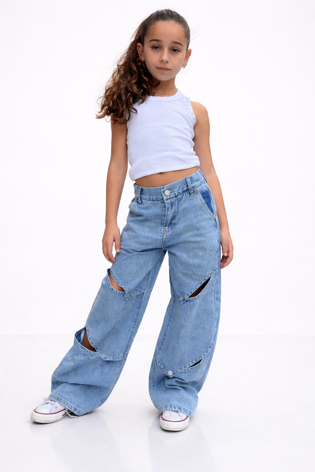 מכנס ג'ינס עם פתחים בקדמי ותיק תק , ג'ינס קליל שמתאים לכל לוק