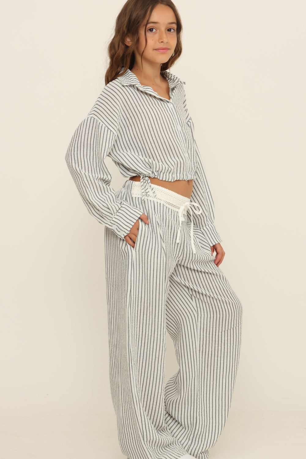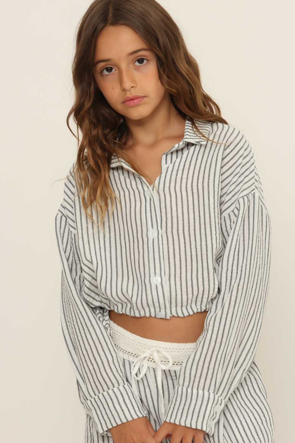 חולצה מכופתרת קרופ פסים אדל