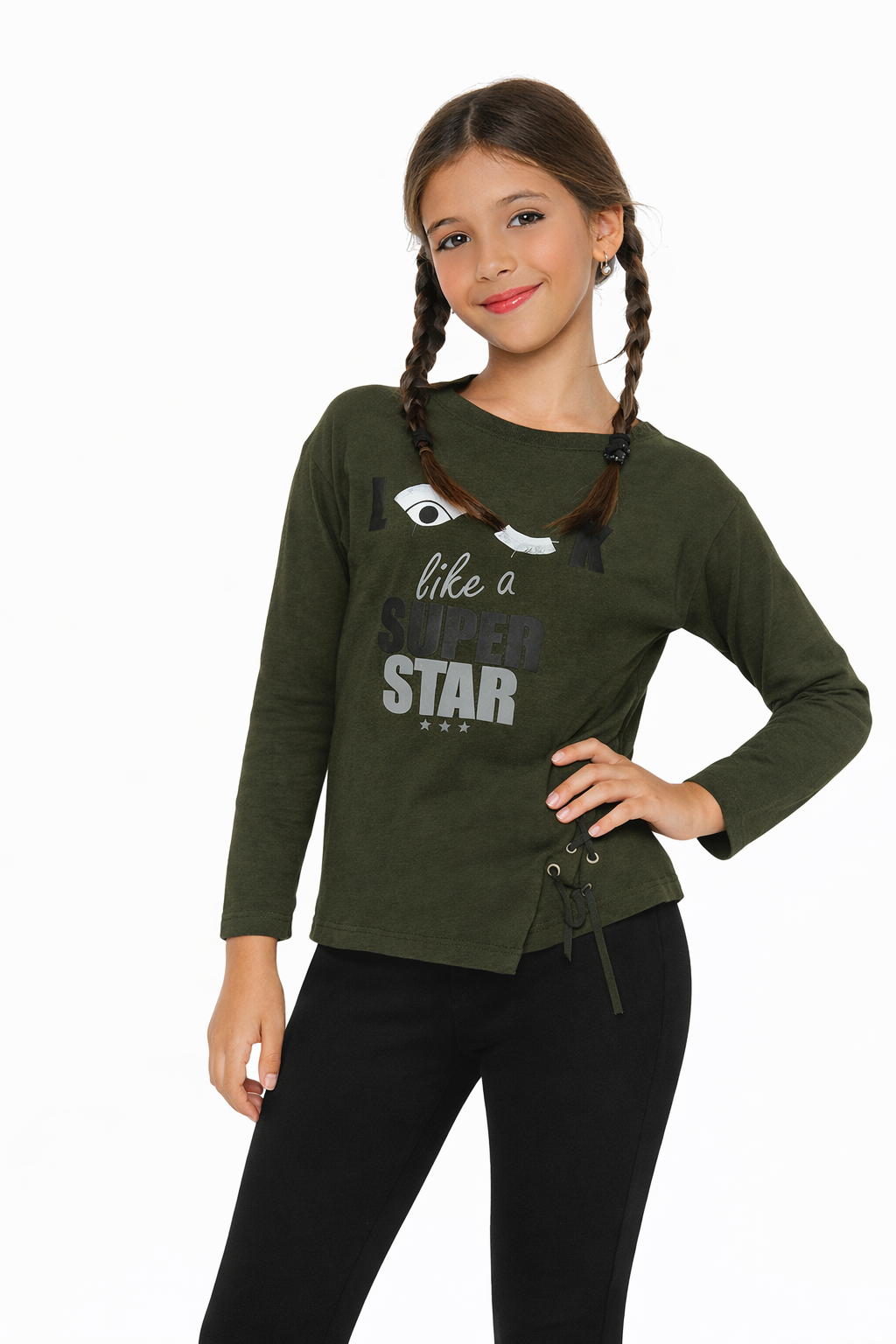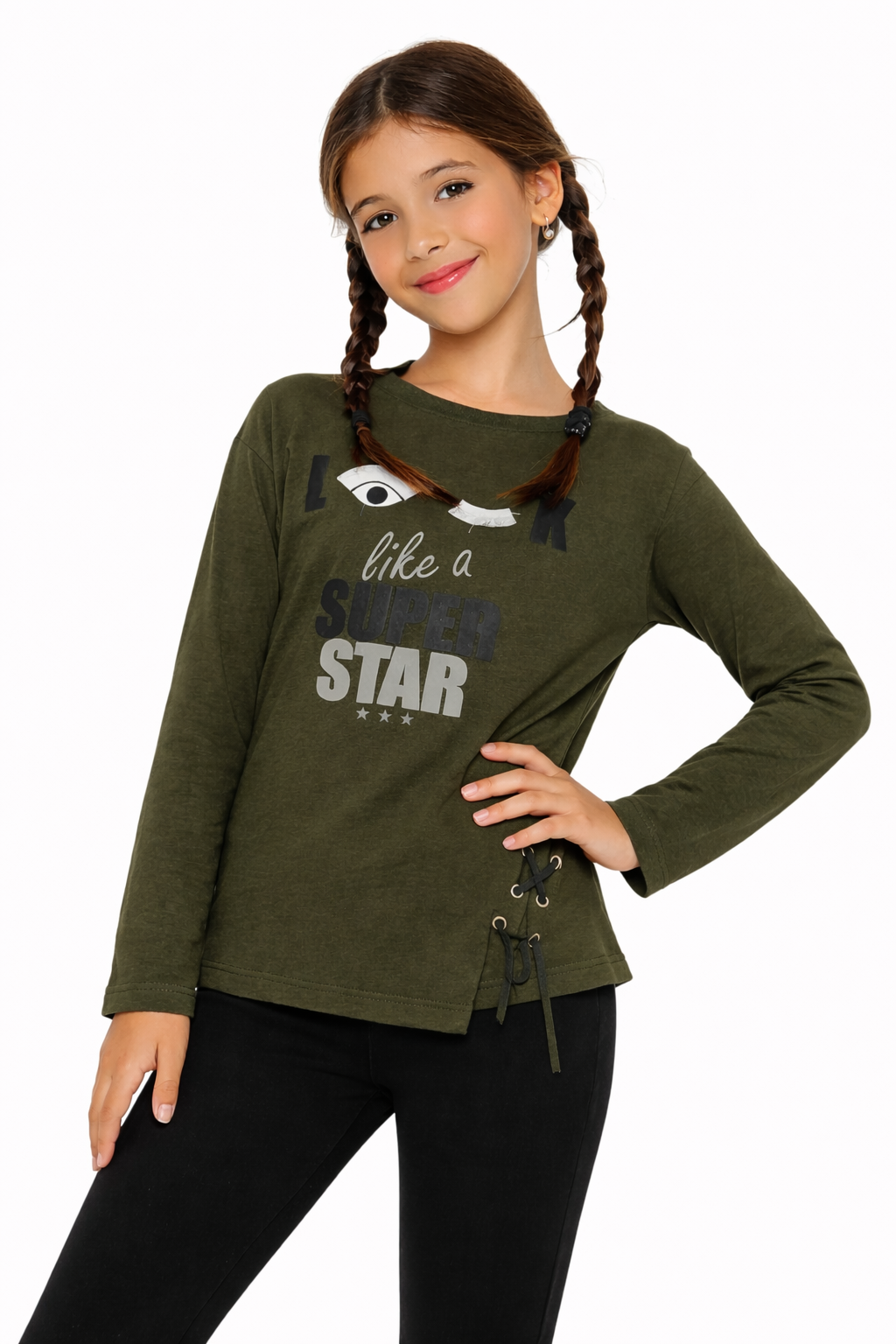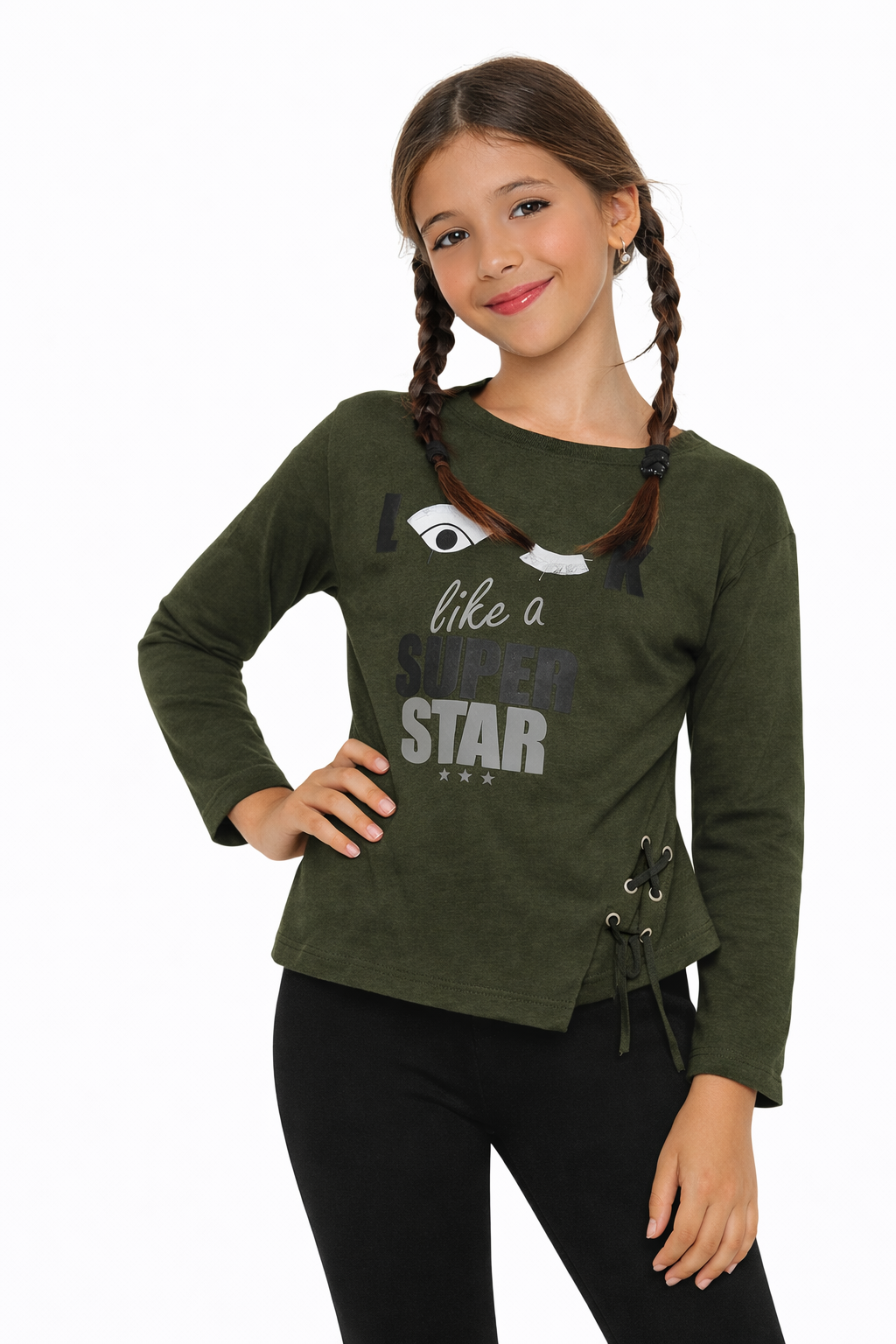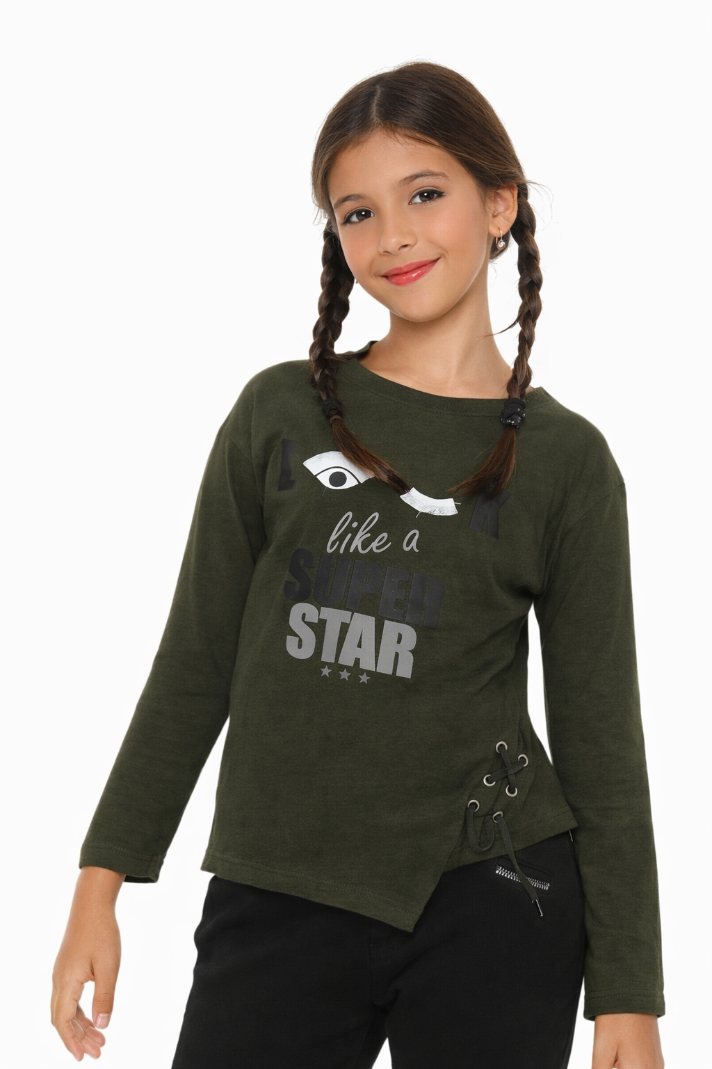 חולצה ארוכה לבנות עם הדפס בחזית