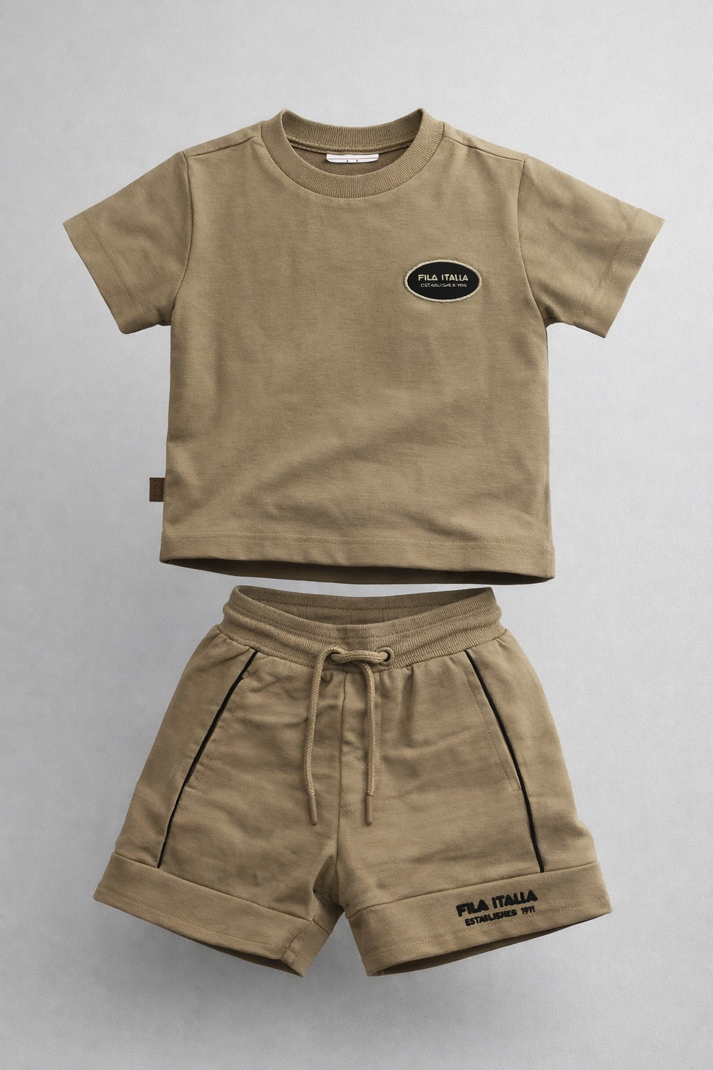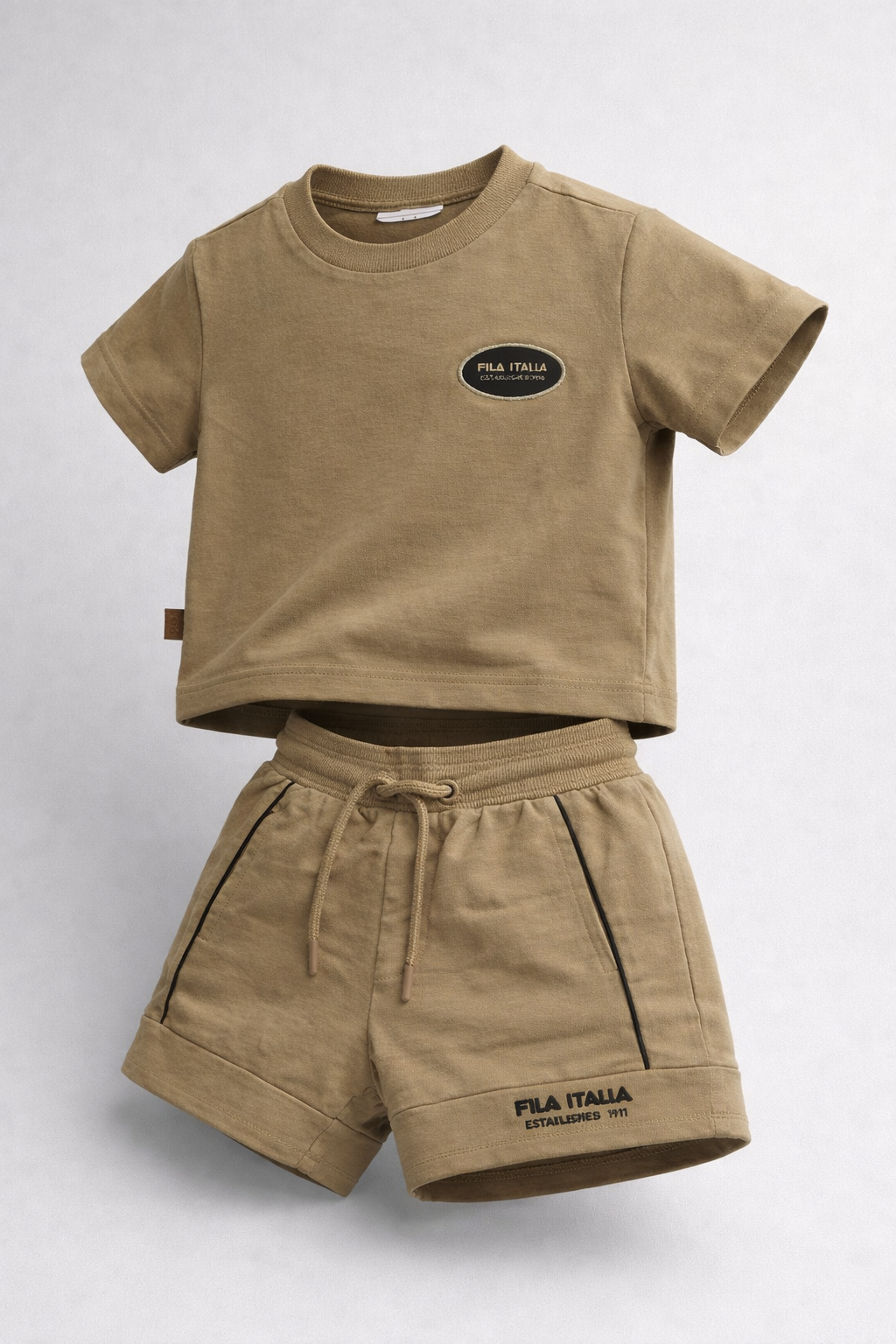טי־שירט קצרה ומכנס קצר עם גומי במותן ושרוך להתאמה נוחה, מבד רך ונעים למגע. לוק ספורטיבי-יומיומי, קליל ומלא סטייל – מושלם