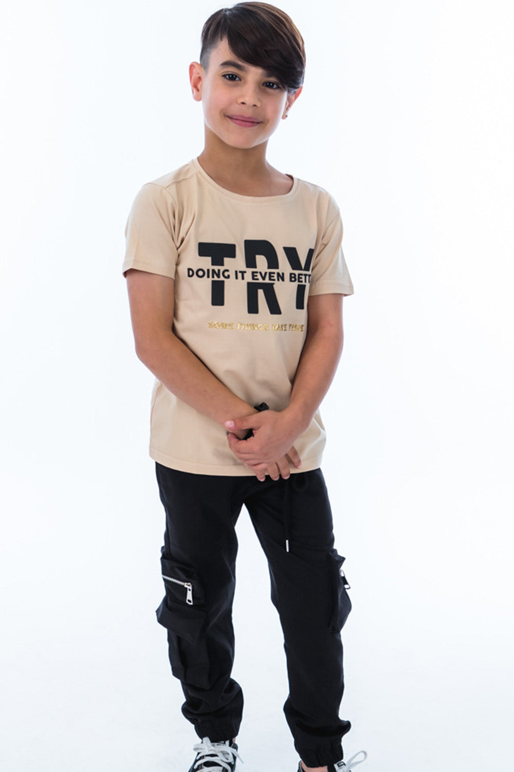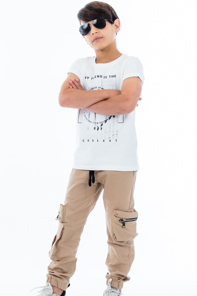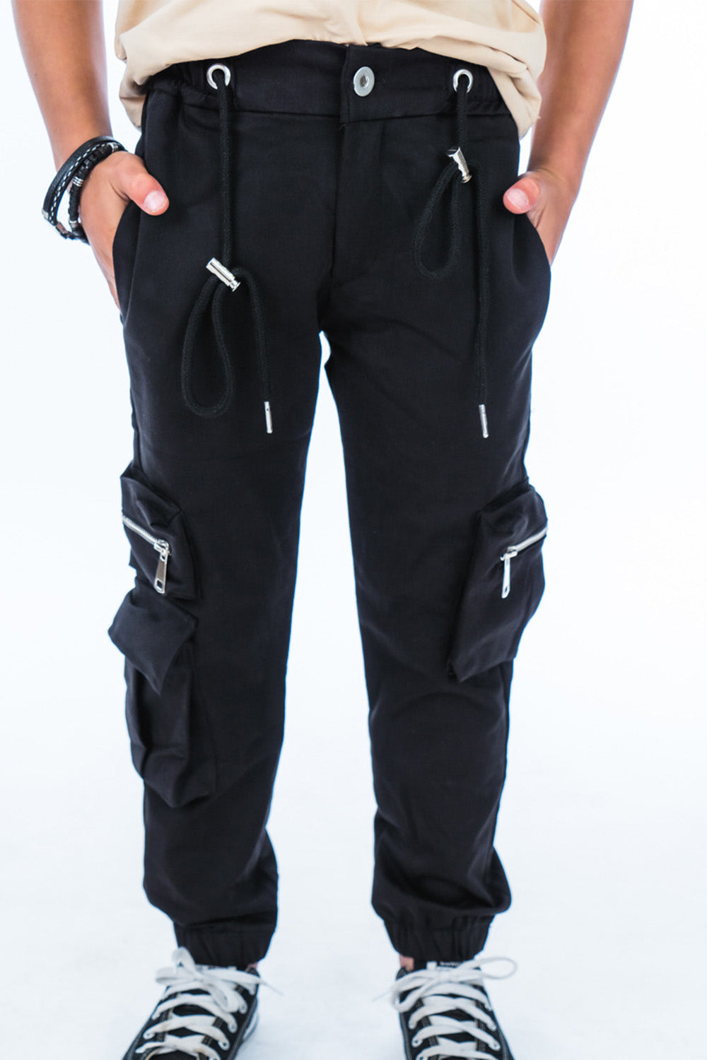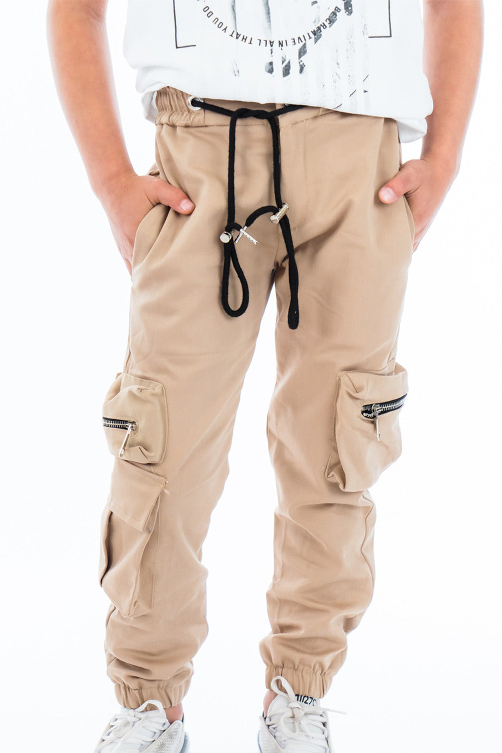 מכנס בנים דגמ"ח חצי גומי במותן כפתור ורוכסן